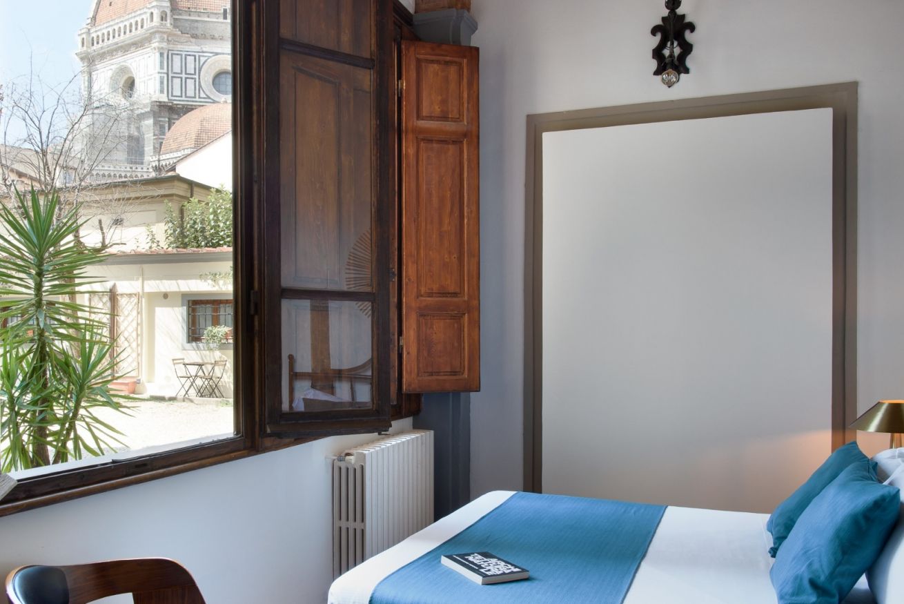Opening the entrance French window, you can enjoy an exclusive view of the dome of the cathedral. In the summer, it is a pleasure to leave it open and curl up on the sofa to plan your travel itinerary.