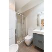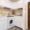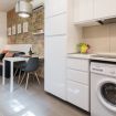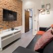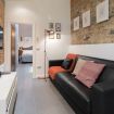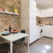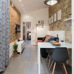 A contemporary style frames the perfect organization of the spaces in this small apartment. The interiors are very welcoming, renovated with style and taste. The walls alternate brick and stone with plastered sections, while the floors and bathroom are in concrete-effect stoneware.