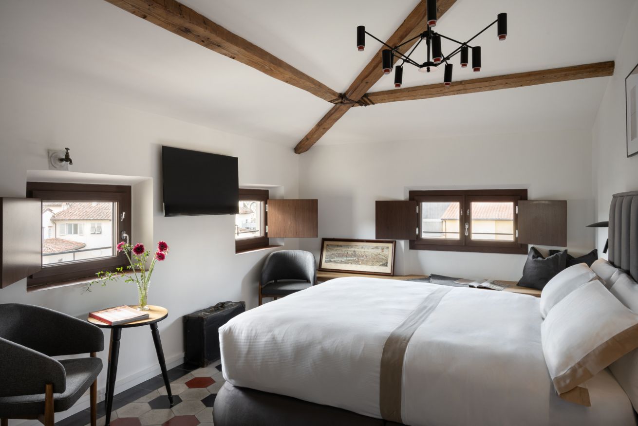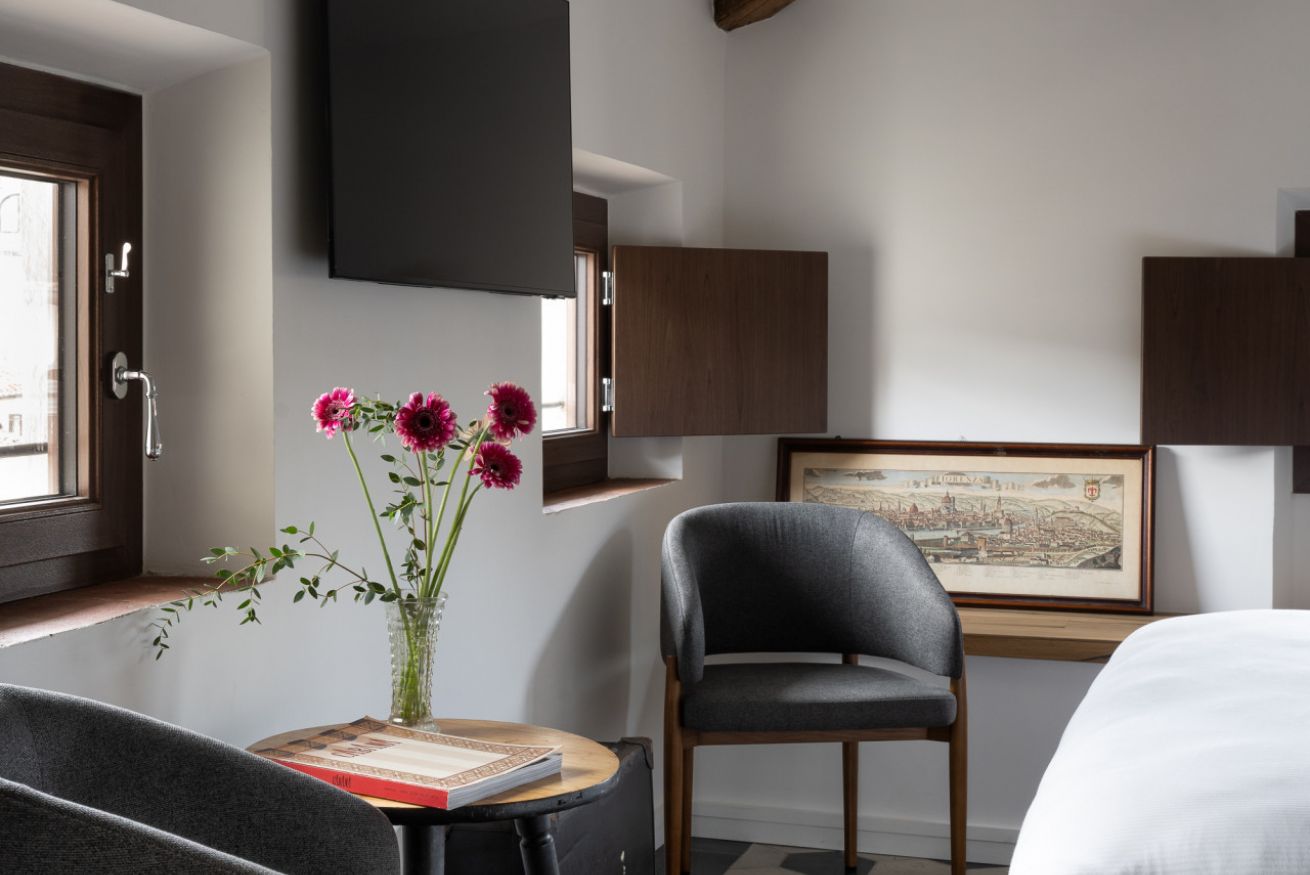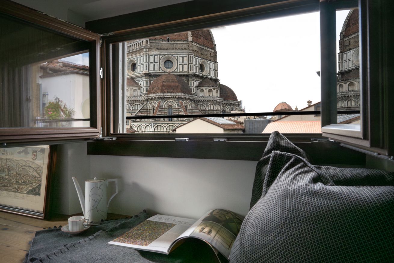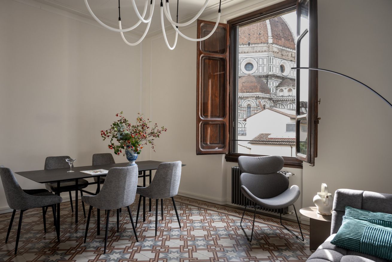 An exclusive stay in the heart of Florence. This Suite Deluxe offers spacious and refined spaces, with an elegant bedroom and modern bathroom. High-quality furnishings and attention to detail make every moment special. Ideal for those seeking maximum comfort and privacy. The windows offer a picturesque view of the dome of the Duomo, for a truly Florentine experience.